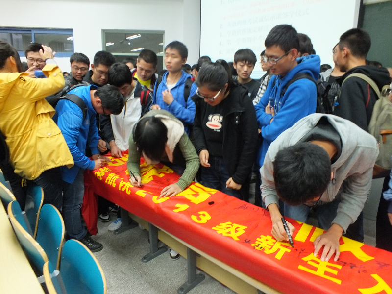 会议最后,全体同学在“廉洁诚信、做人之本”的横幅上签名,力图将廉洁诚信放在心中,并将其融入到平时的学习生活中。