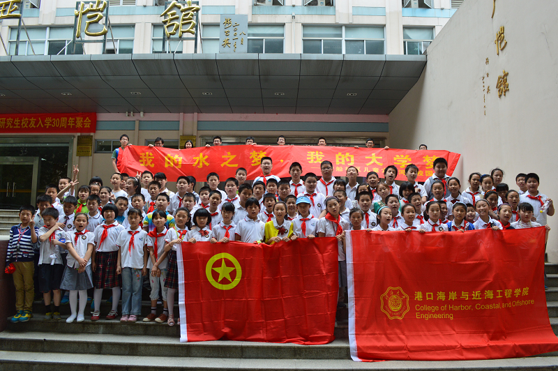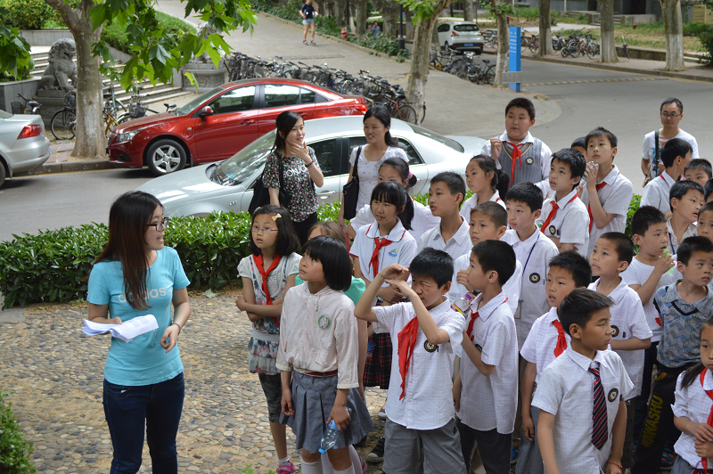 孩子们在河海大学老师和志愿者们的带领下,有序地在河海校园里参观,了解水利先贤们坚韧执着、无私奉献的崇高精神和献身水利、为民造福的大爱情怀;领略河海这座百年名校所特有的水文化;欣赏古色古香的校园建筑和左右耸立着梧桐的林荫大道;在满眼绿色中欢笑、游戏,呼吸着大学校园里自由、清新的空气;好奇地询问哥哥姐姐们这样那样的问题,若有所思却又斩钉截铁地告诉哥哥姐姐们:“我以后也要在这里”。