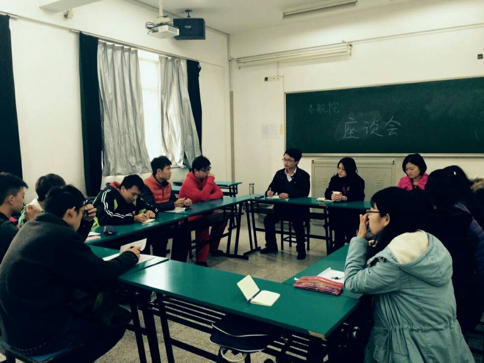 十一月,河海校园内热火朝天,一边是各类活动此起彼伏,一边则是期中考试井然有序的开展。为更进一步了解新生情况、教育新生合理利用时间、帮助他们尽快适应大学生活和开展学生工作,2014年11月28日上午,港航院党委副书记姜海霞老师与团委书记朱钰老师在14级辅导员季超老师的陪同下前往江宁校区致用307教室与2014级各班班长团支书进行座谈交流。