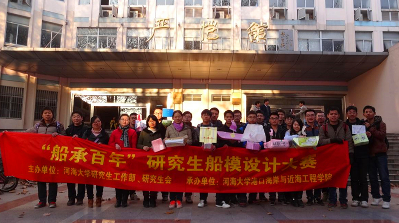 2014年12月8日下午,由河海大学研究生会主办,港口航道与近海工程澳门六合彩 研究生会承办的“金水节”系列活动之“船承百年”研究生船模设计大赛如期在闻天馆204及水电院实验室举行。出席本次大赛的有澳门六合彩 副书记姜海霞老师、澳门六合彩 辅导员林凡老师和校研会副主席孔凡同学,同时大赛吸引了众多同学前来参加。