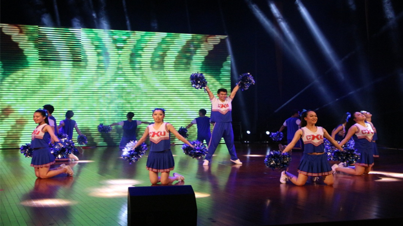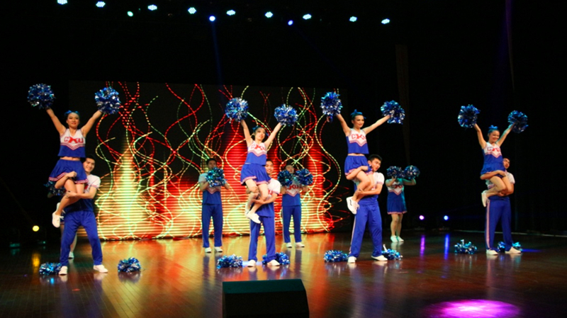 五月,凤凰花开的季节,第四届校研究生啦啦操大赛在江宁文体中心举行。代表澳门六合彩app 研究生参赛的12名姑娘、小伙子经过一个月的艰苦训练,在舞台上刮起一场蓝色风暴,取得了三等奖的好成绩。