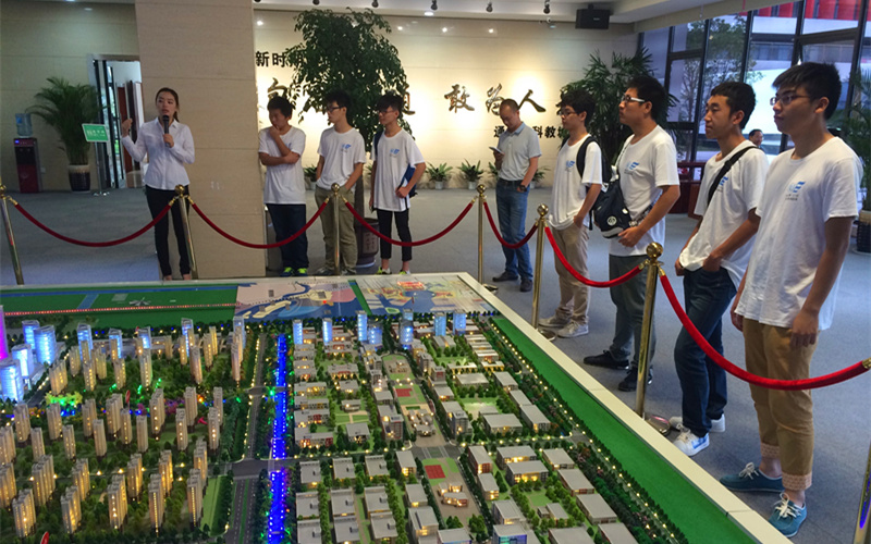 7月9日一大早,队员们乘坐南通沿海开发集团的班车,从驻地出发前往通州湾。一下车,队员们便迫不及待地赶去了河海大学参与建设的通州湾科教城。虽然,此时的科教城是一座新兴的城市,放眼望去,是一片荒凉,只有零零星星的建筑,然而这座城市的未来是光明的:她采用先进的建设理念,集教育、科研、商贸、生活于一体,建成后将成为南通市的“城市副中心”。很快,国内知名院校如河海大学、北京航空航天大学、兰州大学以及一些科研所已经或即将在这里落脚,将为通州湾的建设注入一股新鲜的血液,成为南通海洋开发的中流砥柱。