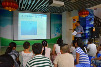 下午3点半,我们的科普小课堂在孩子们期待的目光中拉开了序幕。首先,翟厚明同学向孩子们简述了世界航海史的发展,引经据典的讲述让孩子们沉浸其中,航海家们遇到的奇闻轶事将孩子们深深吸引。接着是游戏环节——由一名小朋友描述深海鱼的特征,另外几个小朋友在一堆卡片里寻找那只鱼。大家都踊跃地参与其中。在这说与找之间,孩子们了解到了更多关于深海鱼的知识,也体会到了海洋生物的多样性。最后,科协干事们给孩子们赠送了河海大学百年明信片,勉励他们努力学习,将来投身海洋建设事业。