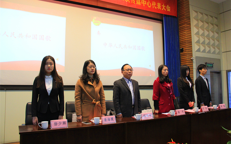 九点整,随着国歌声缓缓响起,会议正式开始。首先发言的是校团委杨天副书记。在讲话中,杨书记言简意赅地总结了两年来港航院团委的工作,肯定了港航院学生“四大组织”取得的成绩,让同学们对学生组织的发展充满信心。