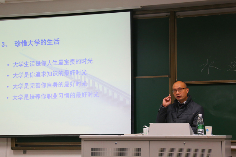 2015年12月3日,2015级港航院新生职业规划讲座在河海大学江宁校区致用楼417举办。此次讲座邀请河海大学学工处副处长魏有兴处长为同学们讲解港航专业该如何提前规划职业。