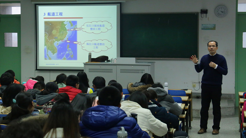 讲座开始之前,港航院党委副书记姜海霞郑金海院长在教学、科研方面的诸多成就做了介绍,随后,在同学们热烈的掌声中,郑院长开始了此次讲座。
