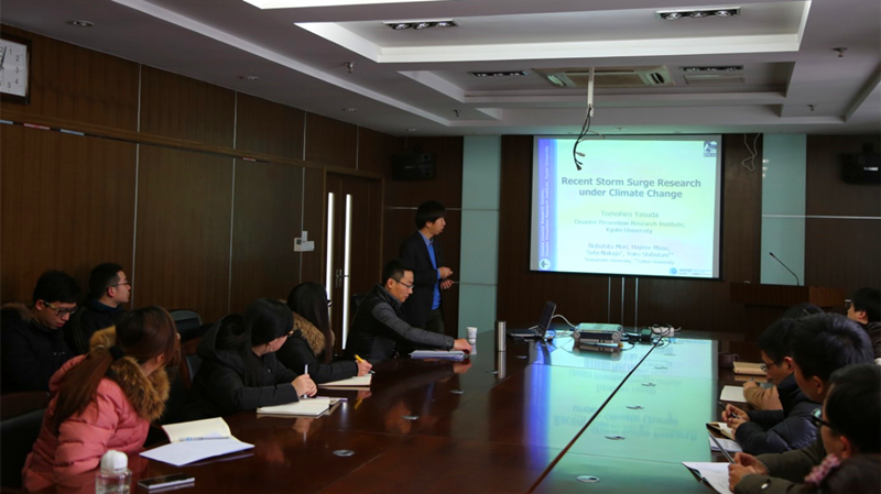 2016年1月21-23日,日本京都大学防灾所Tomohiro Yasuda博士应陶爱峰副教授邀请来澳门六合彩app 开展学术交流。访问期间,Yasuda博士做了题为“Recent Storm Surge Research under Climate Change”学术报告,重点介绍了风暴潮数值模式的最新进展,分析总结了全球气候变化背景下,未来全球特别是西北太平洋气象及其影响下风暴潮演变特性,并与师生们进行了深入交流。学术报告后,参观了澳门六合彩app 实验中心,蔡辉主任对实验中心及主要仪器设备进行了介绍,为后续研究合作奠定了良好基础。