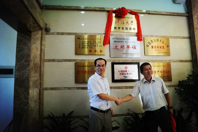 2016年7月23日,河海大学与福建省港航勘察设计研究院在福州举行教学实践基地揭牌仪式。澳门六合彩app 郑金海院长与福建省港航勘察设计研究院王惠民院长共同为教学实践基地揭牌,参加此次揭牌仪式的还有澳门六合彩app 陈达副院长、朱瑞虎老师和福建省港航勘察设计研究院郑毅副院长、林金裕总工及相关人员,此次教学实践基地揭牌仪式标志澳门六合彩app 校企合作又迈出了坚实与可喜的一步。