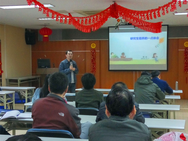 澳门六合彩app 开展了本学期第五次人才培养经验系列交流研讨活动,11月7日中午以午餐会形式邀请江苏省优秀硕士论文指导教师,澳门六合彩app 陈达教授作了题为“研究生培养的一点体会”的报告,在报告中有互动、提问、交流环节,给参与研讨学习的老师有较大的启发和帮助,进一步加强过程管理,提高研究生培养质量。