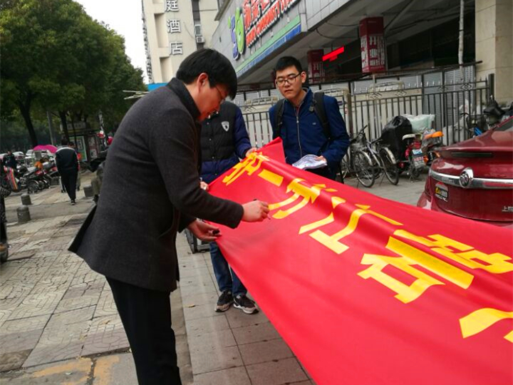 志愿者们到了宁馨阳光家园,一个小队留在宁馨阳光家园与孩子们一起完成文化衫彩绘,一个小队前往附近人流量较多的地带宣传世界水日相关知识。在宁馨阳光家园内,志愿者们与孩子们一一配对,与孩子们交流水文化、水资源保护等小知识,并引导孩子们用水彩、画笔等在文化衫上创作出自己对水的理解和感悟。社区街道上,志愿者门向市民介绍世界水日,讲解生活中的惜水、护水小妙招,并邀请市民在世界水日的宣传横幅上签名。