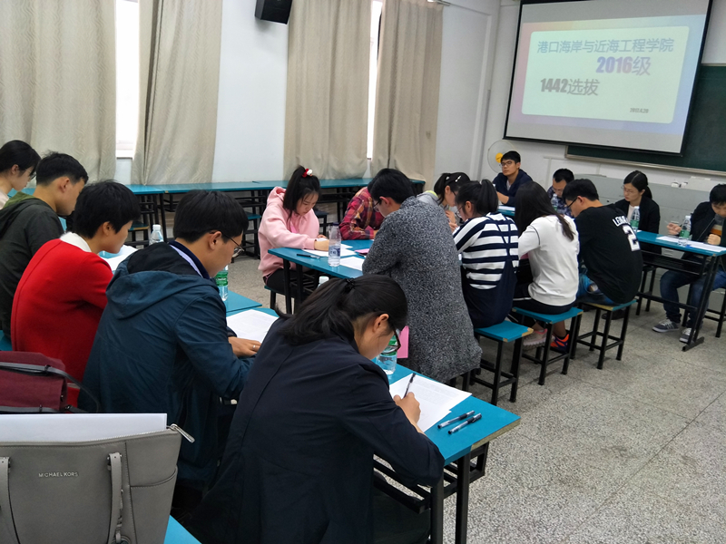 2017年4月20日,在致高楼A215教室,港航院“1442工程”学员面试工作选拔顺利举行,参与本次面试的有澳门六合彩 2016级班导师徐鹏飞、王华坤、徐振山、王韫玮,各年级辅导员以及学生代表。