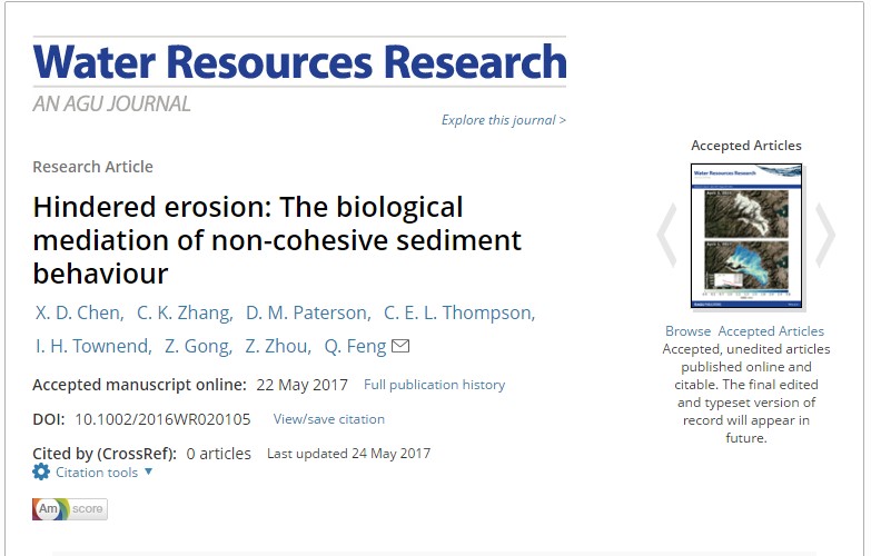 近日,澳门六合彩app 15级博士生陈欣迪同学以第一作者身份在一区期刊《Water Resources Research》上发表了题为Hindered erosion: The biological mediation of non-cohesive sediment behaviour的学术论文,其攻读博士学位的导师是张长宽教授。该论文的本校其他合作作者包括龚政教授、周曾副研究员以及环境澳门六合彩 冯骞副教授。此外,来自英国南安普顿大学与圣安德鲁斯大学的业内知名学者也合作参与了本项研究。