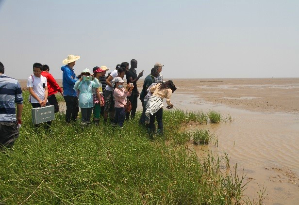 2017年5月20-21日,陈永平教授、周曾副研究员、康彦彦老师、许春阳老师带领16名留学生与6名课题组研究生赴江苏沿海开展现场教学活动。此次活动为我校留学生精品课程《Estuarine and Coastal Dynamics》和《Advanced Coastal Dynamics》的重要教学环节,教学地点位于东台市弶港条子泥围垦区和大丰市斗龙港淤泥质潮滩。途中,陈永平教授等带领大家参观了条子泥围垦区、西大港潮滩、梁垛河水闸和斗龙港米草滩等地,向同学们悉心介绍了条子泥围垦工程的背景与现状、垦区盐碱地脱盐改造技术、潮滩盐沼植被的扩展与蚀退规律、潮沟的形成演变及湿地保护等方面的内容,使同学们对淤泥质潮滩的地形地貌演变与开发利用有了更为直观和感性的认识,加深了大家对淤泥质潮滩及潮沟演变规律、潮汐与水沙运动特性的理解,取得了良好的教学效果。此外,此次教学活动促进了中外学生及师生之间的沟通交流,在学习之余锻炼了大家的语言表达和交际能力,使大家受益良多。