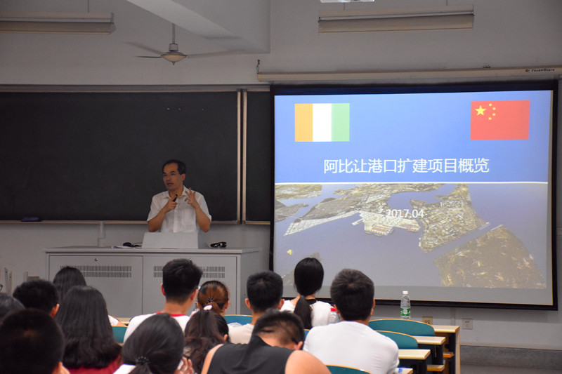 讲座分为两大部分,第一部分围绕国家“一带一路”倡议展开,从一带一路的内涵、背景、成果和愿景四个方面具体介绍,使同学们了解了在国家政策背景下,国内外港口建设形势和未来的发展方向。郑院长勉励同学们正确认识时代责任和历史使命,正确认识远大抱负和脚踏实地,积极修炼,扎实基础。第二部分郑院长为同学们展示了西非港口工程,分析了面临的机遇和挑战。在简单介绍了西非的概况后,郑院长重点介绍了中国港湾西非区域管理中心的运行情况,向同学们展示了西非阿比让港和特马港项目,从港口规划到具体设计,从施工管理到技术攻关,细细解读,层层深入。阿比让港的建设视频,让同学们不禁感叹工程的宏伟和波澜壮阔,专业的自豪感油然而生。在机遇和挑战部分,郑院长分别从学校、澳门六合彩 、学生三个层面进行了分析,希望同学们能够努力锤炼,具备健康的人格体格、过硬的专业知识、良好的工作习惯、灵活的沟通能力和积极的学习态度,直面机遇和挑战。