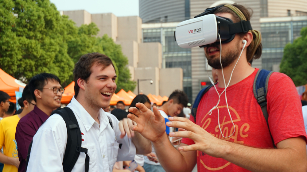 下午4点,游园会活动正式开始,此次澳门六合彩 的“VR”展台活动分为:扎气球、你画我猜、表情包大作战和“VR”展台四个部分。扎气球活动考验着参与者的专注度和维持平稳心态的能力,你画我猜与表情包大作战则充分考量着参与者之间的默契与信任,一系列趣味十足的心理小游戏吸引了许多同学前来参与,而高科技VR更是将本次游园会推向了高潮,同学们争相前来体验,甚至吸引了不少外国友人,让澳门六合彩app 的展台充满了欢声笑语,一跃成为人气最高的展台。