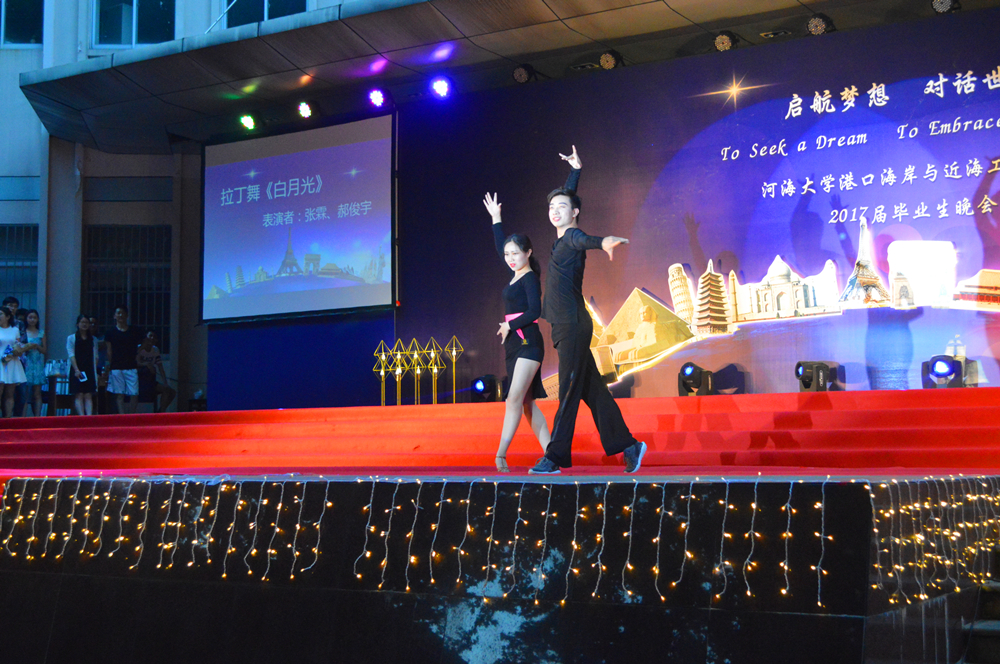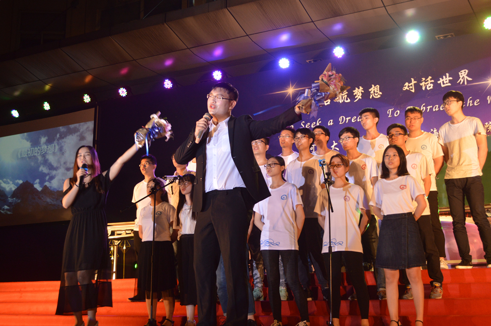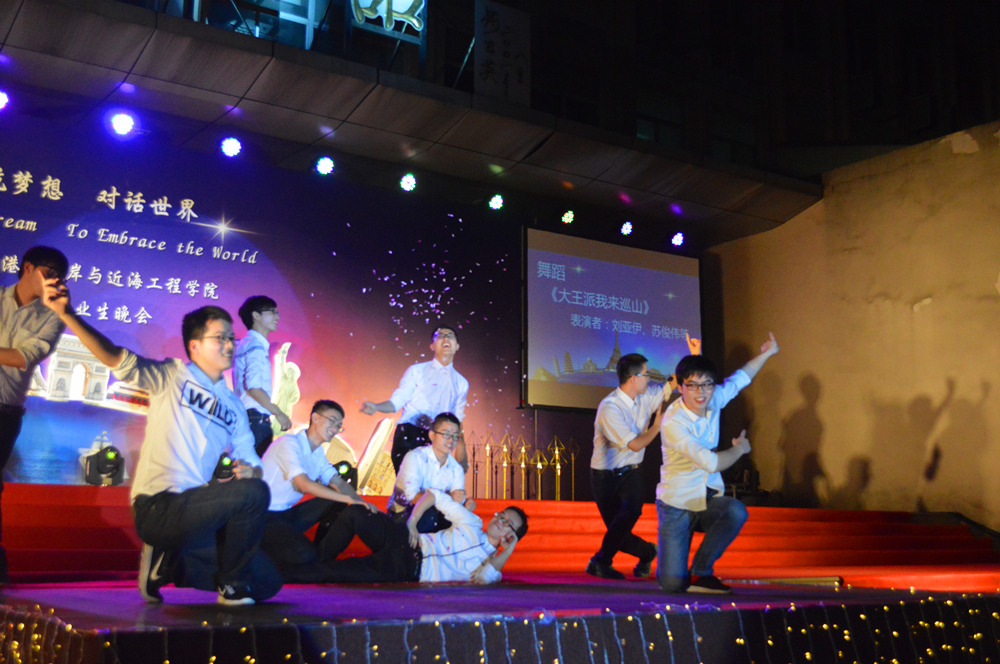 晚会的主题是“启航梦想,对话世界”,一开场,晚会的世界著名建筑物背景和主持人流利的中英双语开场顿时让整个晚会充满了国际范儿。随后,精彩的节目也让人拍手叫绝、意犹未尽。研究生们活力四射的啦啦操和曼妙的拉丁舞表演、蒋勤老师的美声独唱、本科生们的爆笑小品和精彩歌舞,以及班导师、辅导员振奋人心的诗朗诵,还有海洋澳门六合彩