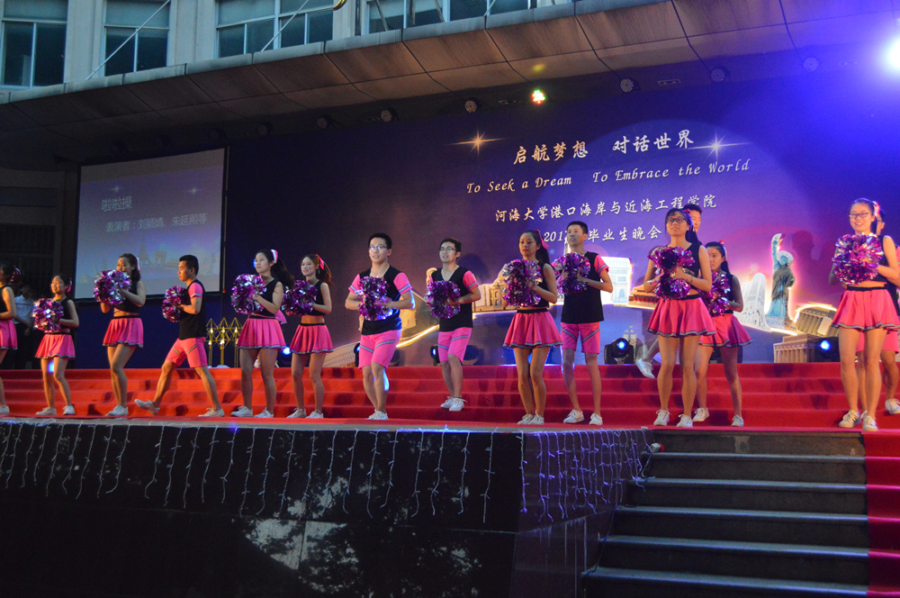 晚会的主题是“启航梦想,对话世界”,一开场,晚会的世界著名建筑物背景和主持人流利的中英双语开场顿时让整个晚会充满了国际范儿。随后,精彩的节目也让人拍手叫绝、意犹未尽。研究生们活力四射的啦啦操和曼妙的拉丁舞表演、蒋勤老师的美声独唱、本科生们的爆笑小品和精彩歌舞,以及班导师、辅导员振奋人心的诗朗诵,还有海洋澳门六合彩