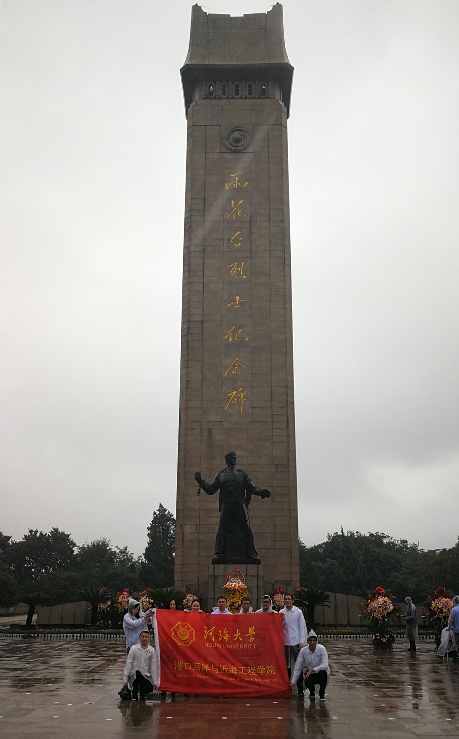 2017年9月30日上午,以2014级港航2班全体党员为主体的港航院学生作为河海大学代表参与了江苏省暨南京市各界向雨花台烈士纪念碑敬献花篮纪念活动。江苏省委书记李强、省长吴政隆、省政协主席蒋定之等领导同志与省、市各界代表一千多人出席了本次活动。