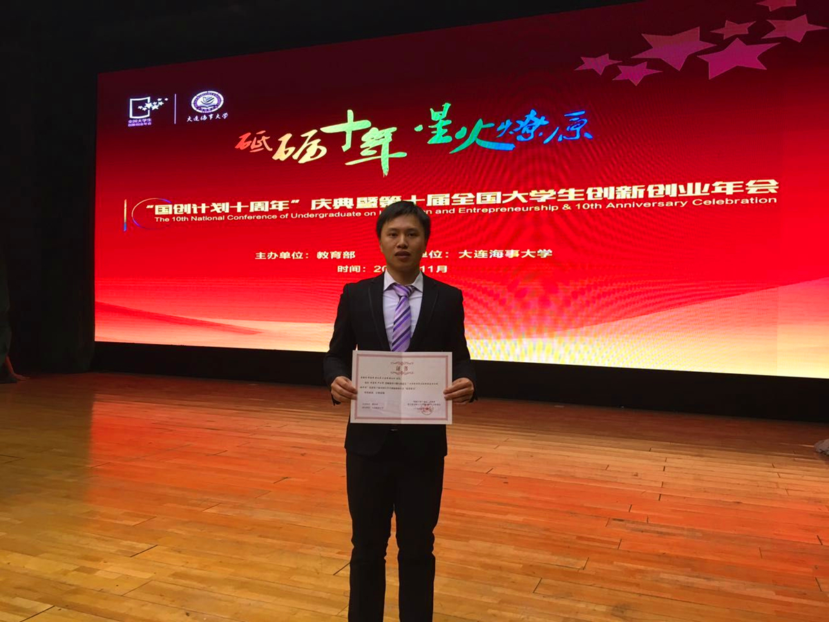 2017年11月17到19日,由教育部主办大连海事大学承办的国创计划十周年庆典暨全国大学生创新创业年会在大连成功举办。澳门六合彩app 由谭慧明、严士常老师指导,2014级本科生黄健钧同学负责的大学生创新创业项目“太阳能电渗法处理疏浚淤泥试验研究”的学术论文经过专家评选荣获为优秀论文。黄健钧作为河海大会唯一一名学生代表,面向全国高校进行了论文交流。