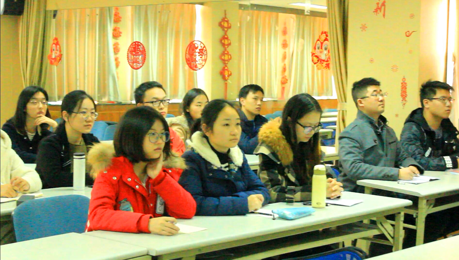 面向毕业班,季老师首先以互动形式,请同学们描述自己选择就业去向的主要原因。同学们从自身特色、职业发展、专业特长等角度纷纷给出诸多想法。之后,季老师引入瓜达尔港开航的新闻背景,为同学们介绍了中国海上通道安全困境,由此指出,由河海港航专业校友成功开建的瓜达尔港改变了中国海外战略困局的事迹。接着,季老师用河海大学知名校友张闻天的故事,鼓励同学们向先贤学习,不忘初心,为中华民族的伟大复兴而努力。最后,季老师带领同学们一起朗诵梁启超的《少年中国说》,与同学们一起宣誓立志。