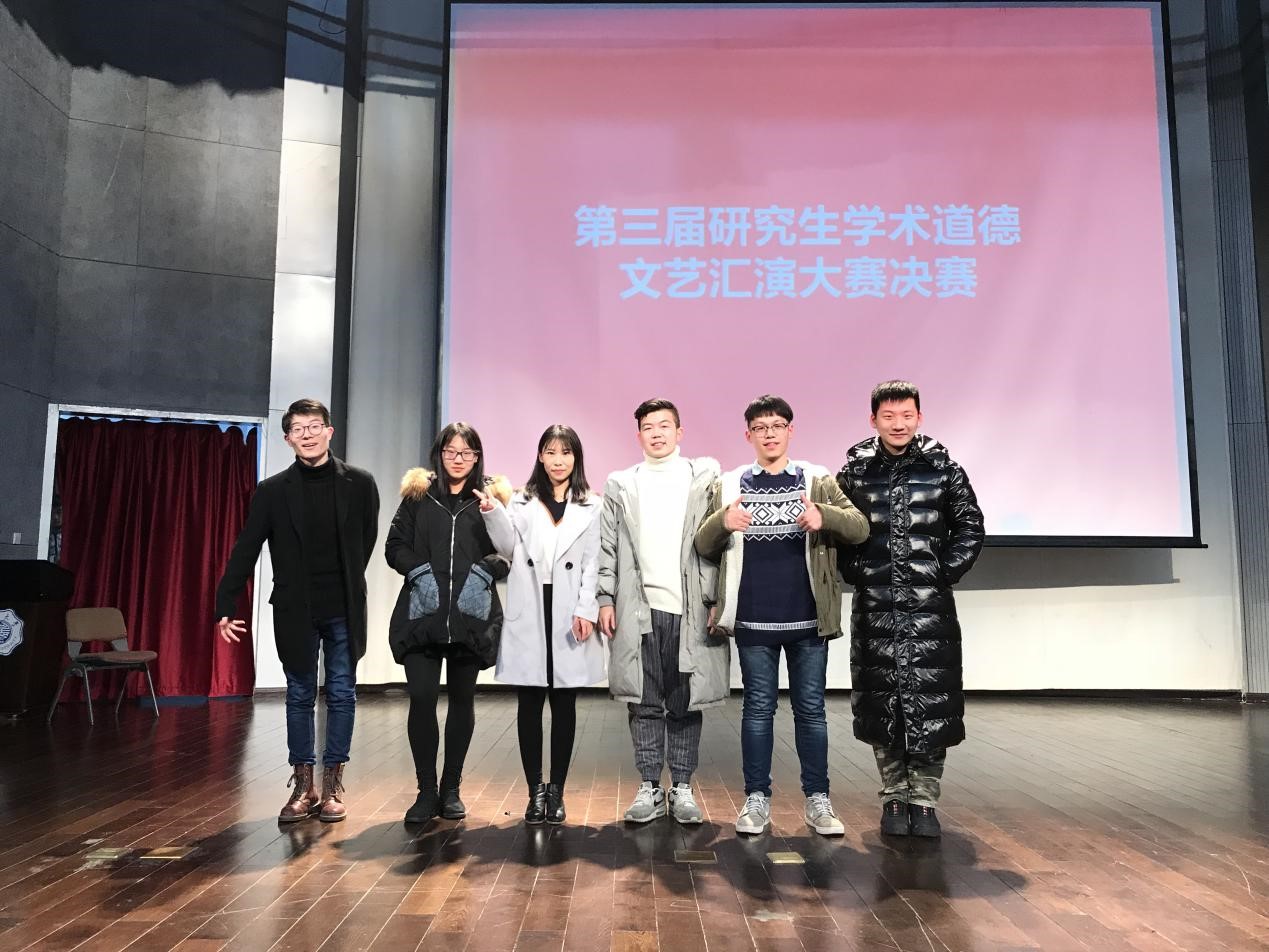 本次汇演澳门六合彩app 作品紧扣“坚守学术道德,抵制泡沫学术”的主题,通过两位研究生对待科研学术活动的不同态度,导致的不同人生经历,在反映了学术造假的危害同时,巧妙加入大学校园生活的元素,使得故事更加贴近现实。澳门六合彩app 研究生演员们在学习、考试的间隙中紧锣密鼓地进行了多次练习以增加配合度和熟练性,大家的不懈努力换来了最终令人满意的舞台效果。实际演出时,大家尽心尽力地完成了每一句台词和每一个动作,多次博得台下评委和观众的掌声,男主角章乐远的演技更是在点评阶段获得了评委老师的高度肯定。最终澳门六合彩app 同学以92.13的高分从参加决赛的九支队伍中脱颖而出,喜获第二名。