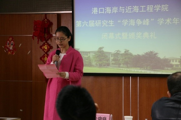 11月29日下午,澳门六合彩 第六届研究生“学海争峰”学术年会在严恺馆702顺利闭幕。校党委研工部李枫部长、澳门六合彩app 党委胡忠华书记、张继生副院长、陈永平教授、郝嘉凌老师、林凡老师、校研究生科协主席朱晓晓出席了此次闭幕式。