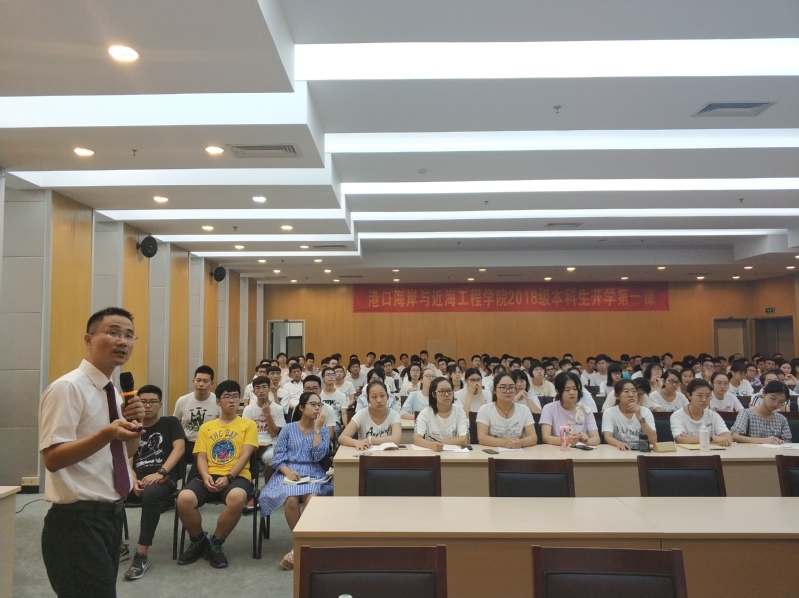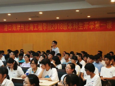 开学典礼后,龚政院长给港航院2018级全体新生讲授开学第一课。龚院长从学校悠久的历史讲述到澳门六合彩 光辉的历程,结合时代背景和国家战略,谈港航专业的内涵和发展,他用“舟楫之便,向海而兴”八个字强调了港航专业的意义与优势所在,他指出,无论国内还是国外,在很多重点水利工程的设计和建设中都能看到港航人的身影,同学们应以此为傲,也应为此而奋斗努力。同时,龚院长从新生的视角,深入浅出地引导新生结合专业尽早确立目标、规划大学生活,书写自己无悔的青春。新生对开学第一课兴趣浓厚,现场提出很多问题,龚院长一一答疑解惑。