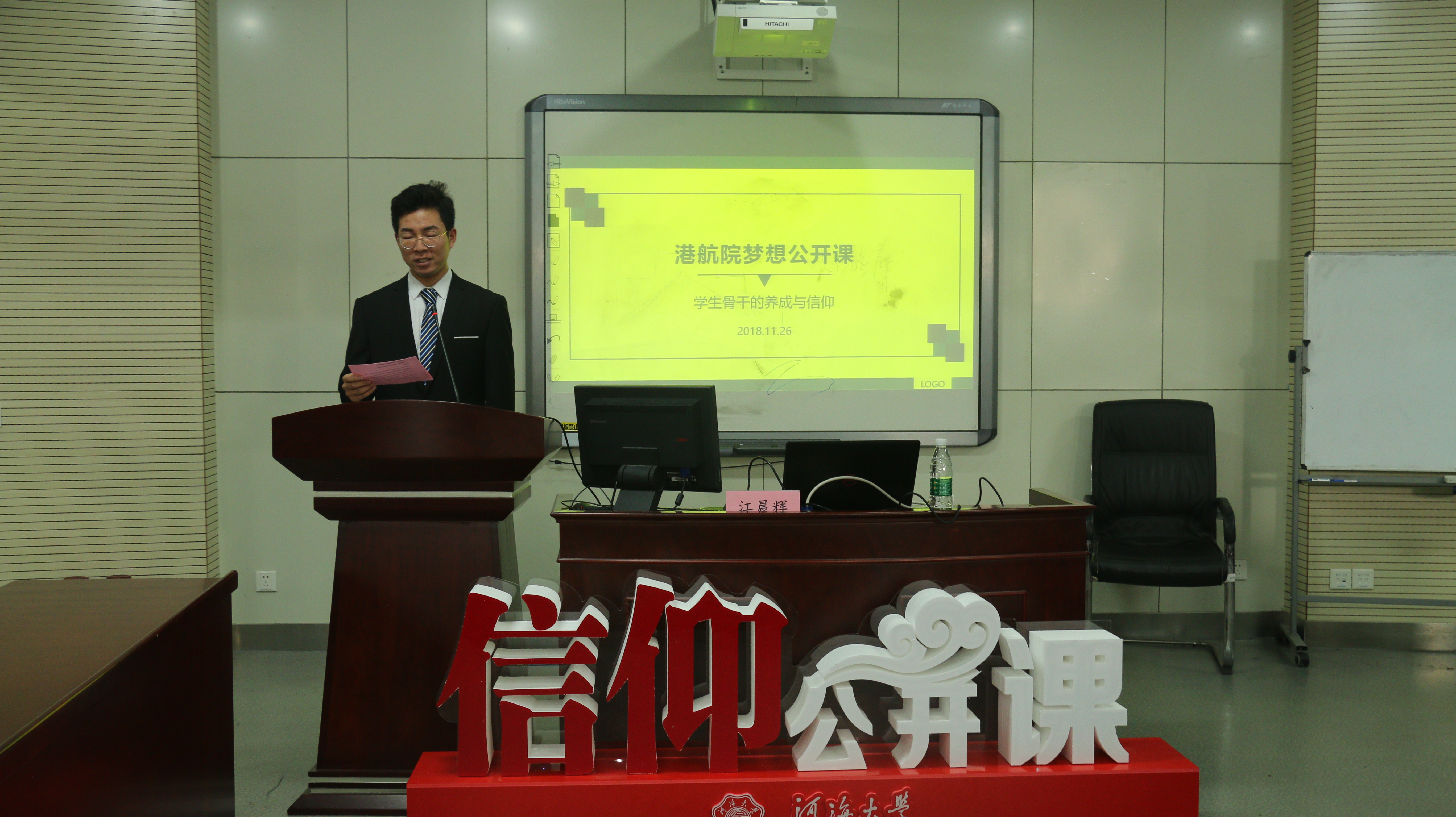 11月26日下午三点,澳门六合彩app 梦想公开课之学生骨干的养成与信仰在江宁校区博学楼A411举行。本次讲座邀请到了学校研究生会主席江晨辉同学,他以“因为热爱,所以坚持”为主题,向17级和18级同学们分享了他作为学生骨干,对于信仰和梦想的坚守与践行。
