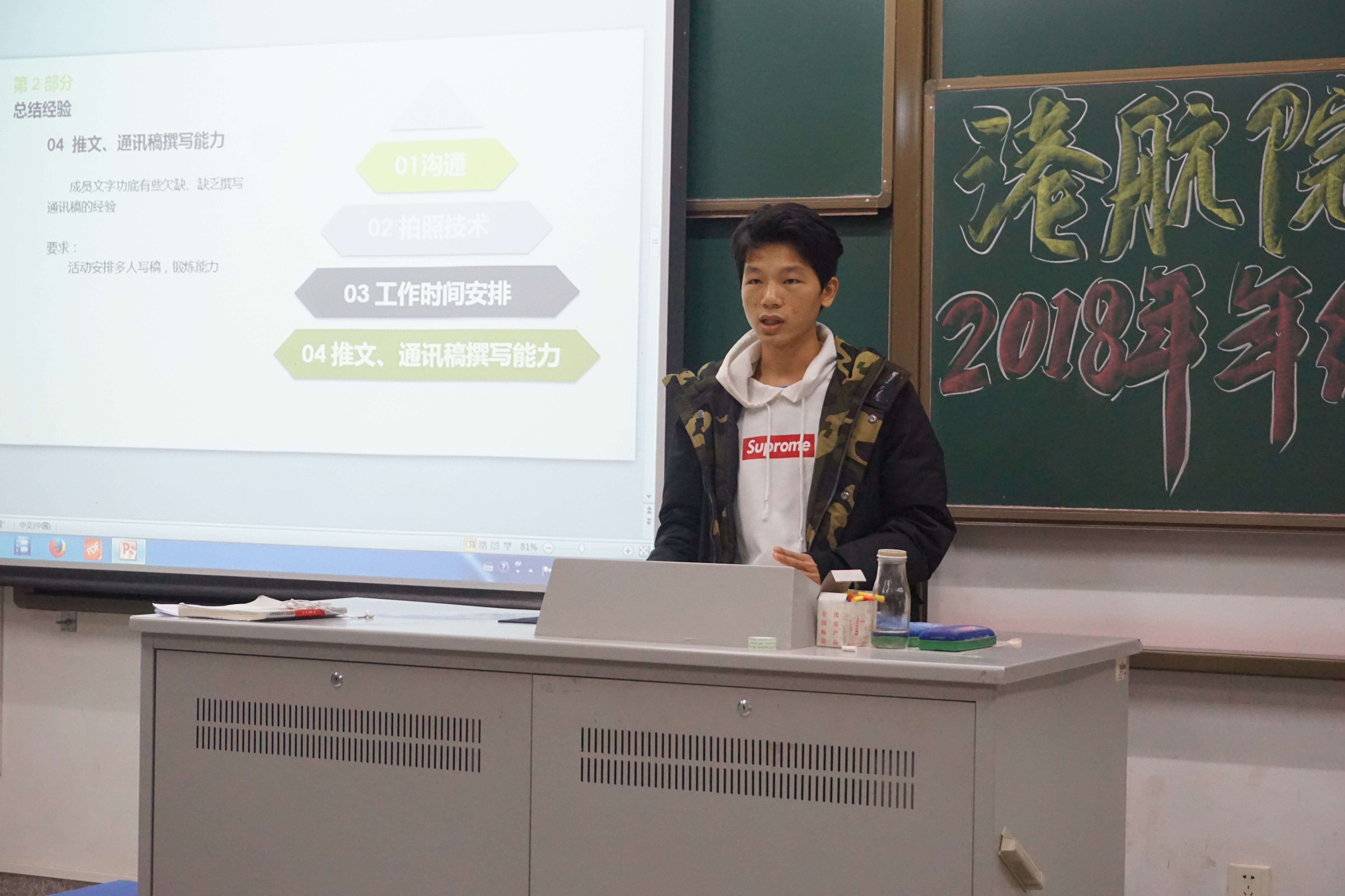 12月14日,港航院2018年度学生组织工作年终总结会在江宁校区致用117教室举行。会议由澳门六合彩