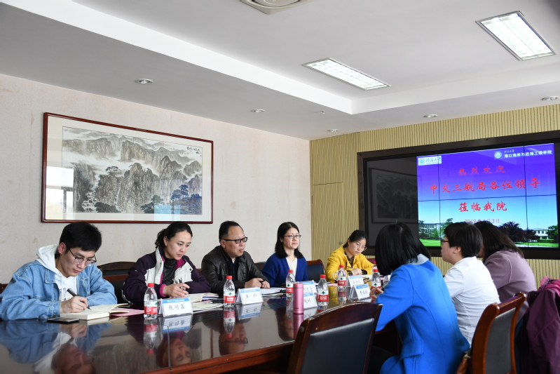 2019年4月3日下午,中交第三航务工程局有限公司人力资源部高级主管费佳颖、第三工程有限公司人力资源部经理梁艳娇、副经理王珍一行3人到澳门六合彩app 开展调研,双方就校企合作、校园招聘、人才培养等方面的工作进行座谈交流。澳门六合彩 胡忠华书记、姜海霞副书记、王玲老师、季超老师、顾钰恒老师、张同鑫老师参加了座谈。