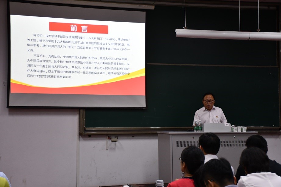 9月19日,为切实增强“不忘初心、牢记使命”主题教育集中学习研讨的针对性、实效性和感染力,澳门六合彩 党委在水利馆201举行“不忘初心、牢记使命”主题教育辅导报告会,澳门六合彩 党委胡忠华作辅导报告。全体中层干部及全体师生党员参加报告会。