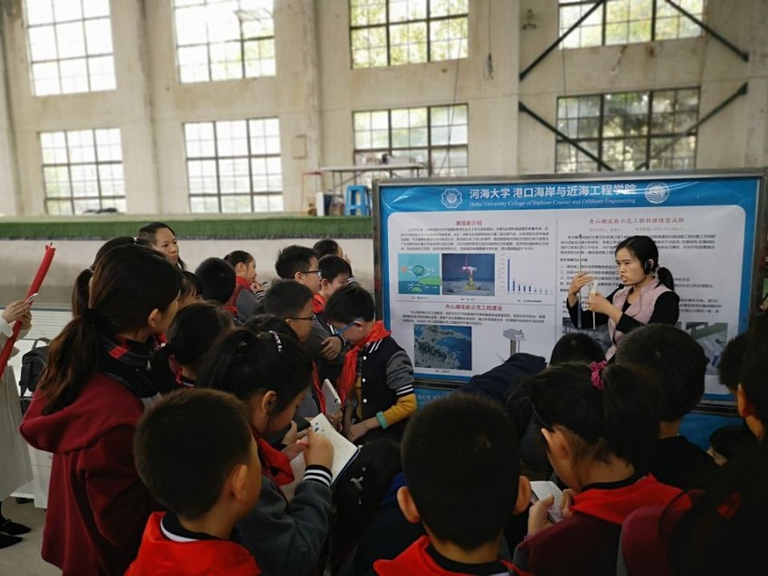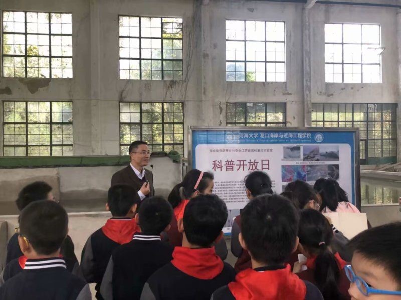 重点实验室主任龚政教授图文并茂的介绍了海洋资源的多样性,讲述了海岸灾害的破坏性,以及在海岸动力地貌与河口保护方面所做的工作;相关老师组织同学观摩了波浪与防波提相互作用模型试验和潮流能发电模型试验,直观地科普了有效防护海洋灾害和充分利用海岸带资源的工程措施;澳门六合彩 实验中心老师参与组织本次开放日活动。