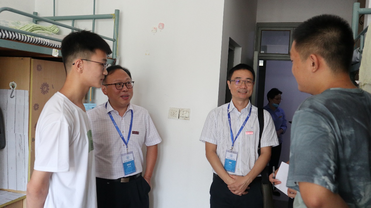 2020年9月8日,澳门六合彩 龚政院长、胡忠华书记、沈国军副书记在辅导员顾钰恒老师、林晨老师的陪同下,走访江宁校区教学区六舍和八舍,亲切地慰问了2020级新生。