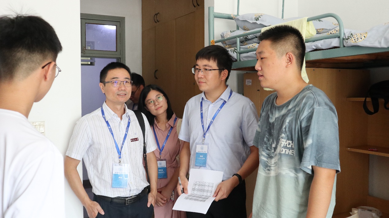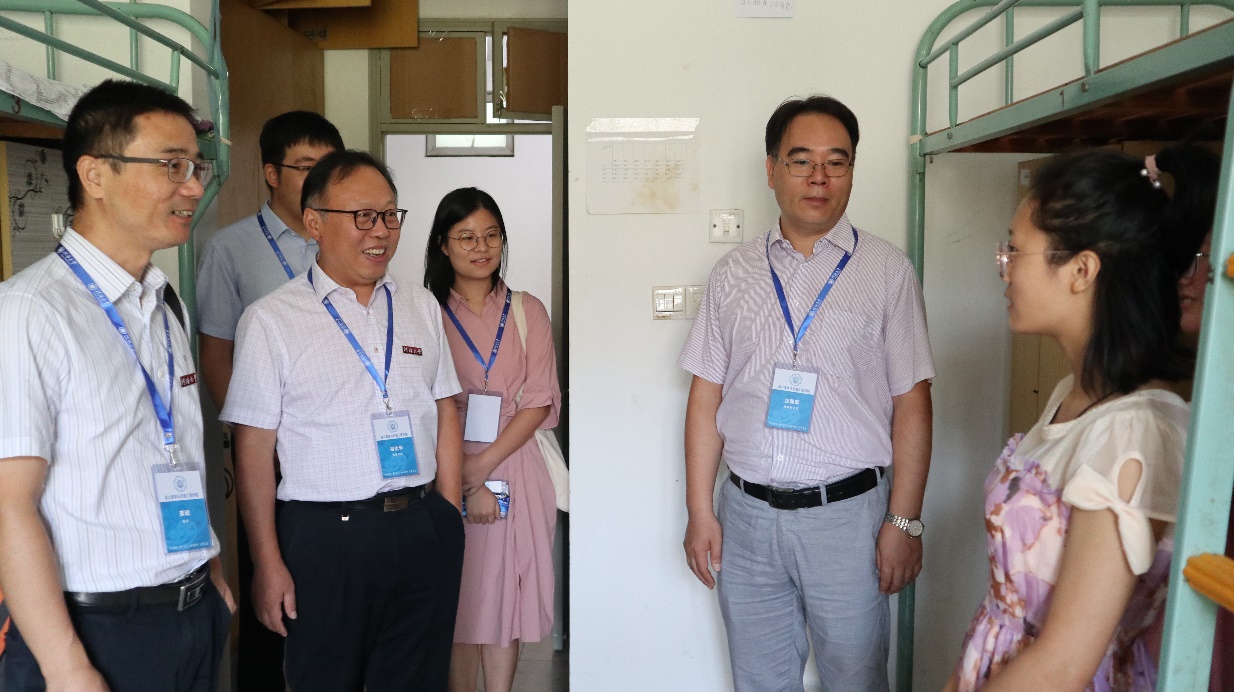 走访过程中,龚院长、胡书记、沈书记同新生们进行了亲切地交流,询问了新生生源地和报到情况,关心同学们对新的学习生活环境适应情况,提醒新生注意宿舍环境卫生和用电安全,并对学生的未来职业生涯规划提出建议。同学们也亲切地向老师们说明了在学习、生活、就业、社团活动以及学生工作等方面的期待。最后,澳门六合彩 领导们来到宿管站,对宿管阿姨的辛苦工作表示感谢。