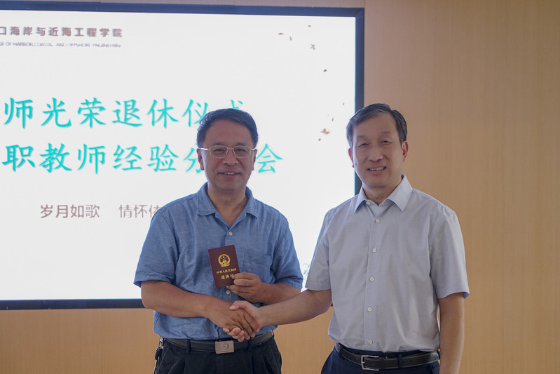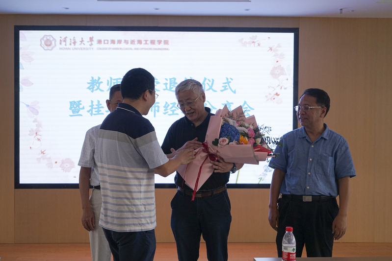董增川副校长为王义刚教授、何春林老师、鲁子爱教授颁发了光荣退休证书,并发表了讲话。董增川副校长祝三位教师和港航院全体教师教师节快乐!他指出,学校发展、澳门六合彩 的发展关键是教师,三位教师为河海的发展做出了重要贡献,他代表学校对三位教师表示衷心感谢!