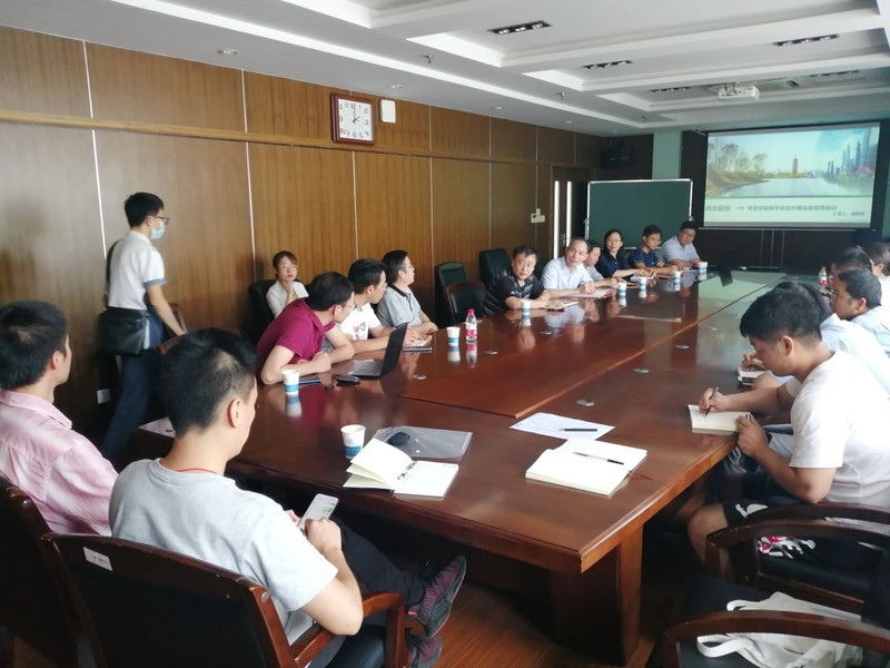 2020年9月16日,澳门六合彩app 实验中心组织举办了弯道变坡教学实验水槽应用培训,培训会议由张蔚副院长主持。本次培训采用室内讲解、现场演示及问题解答相结合的形式,培训内容主要包括:水槽主要构成与功能、水槽流量自动控制系统、水槽维护与保养、常用实验类型及仪器设备布置等。参加培训的人员有北京尚水股份有限公司(承建方)项目组人员和澳门六合彩app 师生,共30余名。