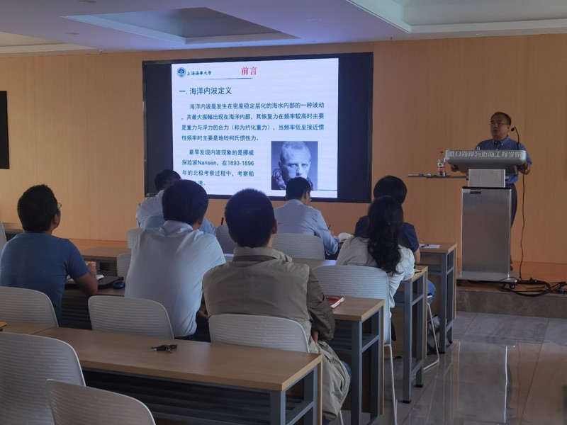 张洪生教授作了题为“两种表面边界条件下分层海洋中内波传播的数值模拟”的学术报告,报告详细介绍了南中国海海域内波的特征与影响、自由水面和刚盖假定两种水面边界条件下的内波在空间传播特征与动力特性方面的对比分析。会后,张洪生教授和与会师生就南中国海内波的相关问题展开了热烈的讨论与交流。该报告会是澳门六合彩app 海岸灾害及防护教育部重点实验室河口海岸保护利用系列特邀学术报告会系列报告,对澳门六合彩app 在海岸与海洋工程防灾以及水波动力学方面的学科发展起到了良好的推进作用。