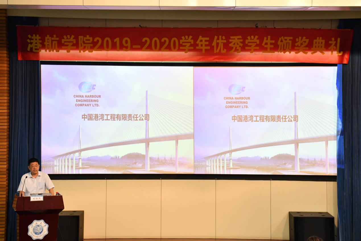胡忠华书记为典礼致辞,对中国港湾工程有限公司的支持表示感谢,对获奖学生表示祝贺,充分肯定了港航学子在过去的一学年中取得的优异成绩,同时对同学们提出三点希望,一是要懂感恩,要感激党和政府提供条件和激励保障,要感激企业的社会责任感,要感激教师的呕心沥血;二是要坚持学习,学习获奖者的刻苦钻研精神,学习他们对专业的热爱,学习他们探求科学真理的决心;三是要有理想追求,要在仪式教育中心怀崇高理想,坚定专业自豪感,有人生追求。