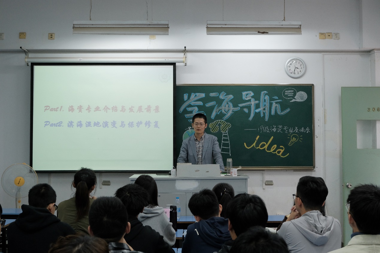 在幽默轻松的氛围中,周曾老师向同学们讲解了海洋资源开发技术专业的专业背景、学科重点以及毕业后的升学、就业去向,介绍了澳门六合彩 研究所的师资力量以及研究生培养优势。周曾老师还简要介绍了海洋资源开发技术专业可以应用的、具有国家重大需求的领域——滨海湿地的演变与保护修复。在详细的专业介绍后,周曾老师向同学们强调了努力学习、形成优良班风、学风的重要性。