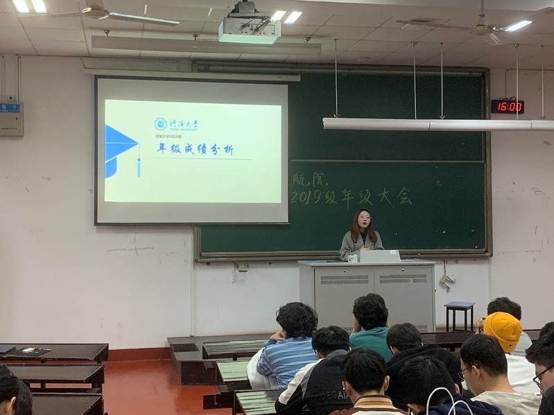 12月23日下午,澳门六合彩 2019级在水利馆201举行年级大会,大会由辅导员廖芳艺主持,2019级全体学生参加本次大会。辅导员廖芳艺就学年整体学习情况分析、保研细则导向、安全问题进行相关主题教育。