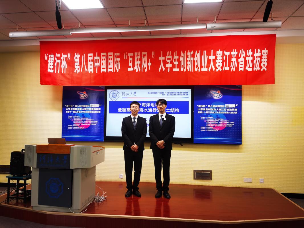 在产业赛道,由达波、陈达、侯利军等老师指导,港航院2021级研究生李益鹏、2019级本科生陶韬、2020级本科生彭润等同学共同完成的创新创业项目《基于海洋地材的低碳高耐久海水海砂混凝土结构》获得大赛一等奖。