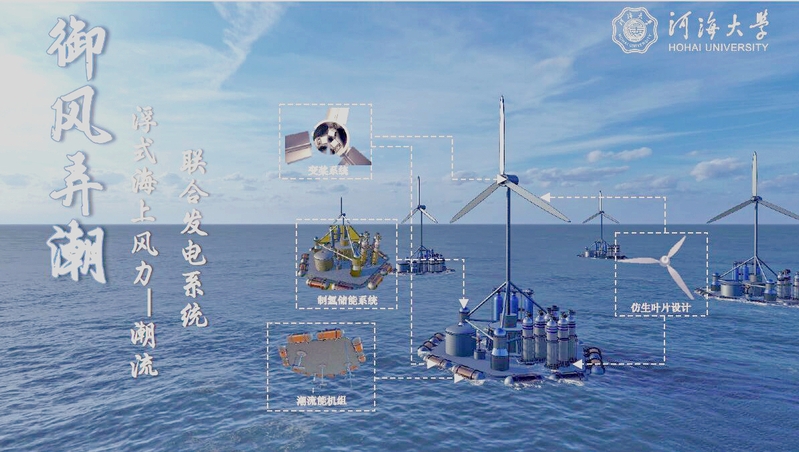 该团队由港航院2020级本科生凌皓炜、张一驰、高子骋,2021级本科生丁子涵、赵习羽,能电院2020级本科生顾晨及商澳门六合彩 2019级本科生朱一宁等7人组成,在澳门六合彩 张继生教授、能源与电气澳门六合彩 张玉全教授以及国家海洋技术中心武贺研究员的联合指导下,围绕着远海海洋能开发的工程难题提出解决方案,在仿生鹰隼叶片设计、协同变桨控制系统、风潮联合发电机制三个方面进行优化,提出了一种浮式海上风力—潮流联合发电系统。