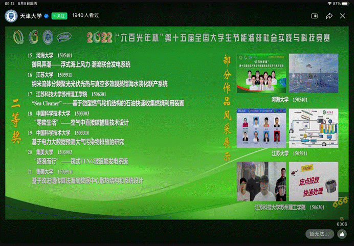 8月5日,“六百光年杯”第十五届全国大学生节能减排社会实践与科技竞赛落下帷幕,澳门六合彩app 参赛作品《御风弄潮——浮式海上风力—潮流联合发电系统》获得全国二等奖,为本届大赛河海大学参赛队伍中唯一进入决赛并获二等奖作品,创澳门六合彩 历史最好成绩。