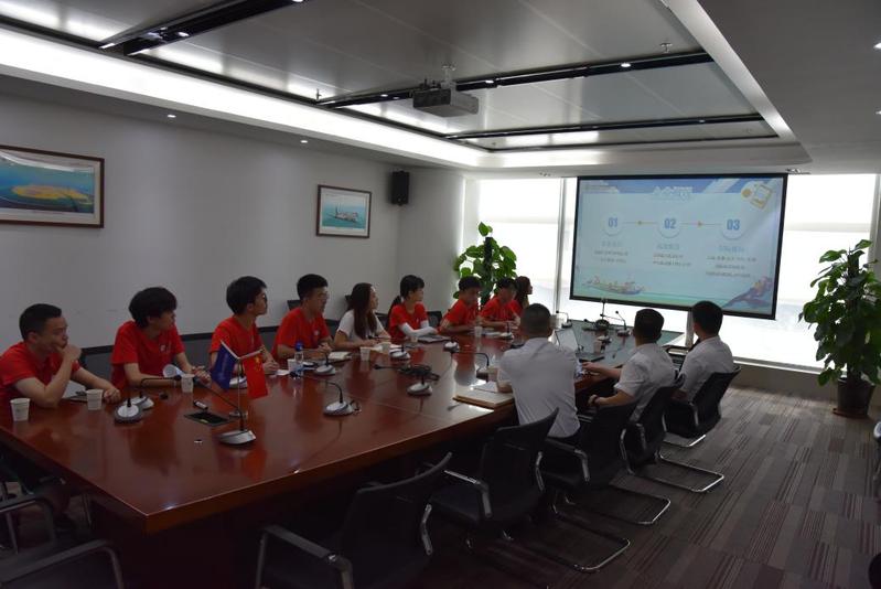 杨景鹏书记、庞彭美雄副书记及项目部工作人员与实践团成员进行座谈交流,杨书记从疏浚设备及施工工艺两方面对深中通道项目整体情况进行了介绍。
