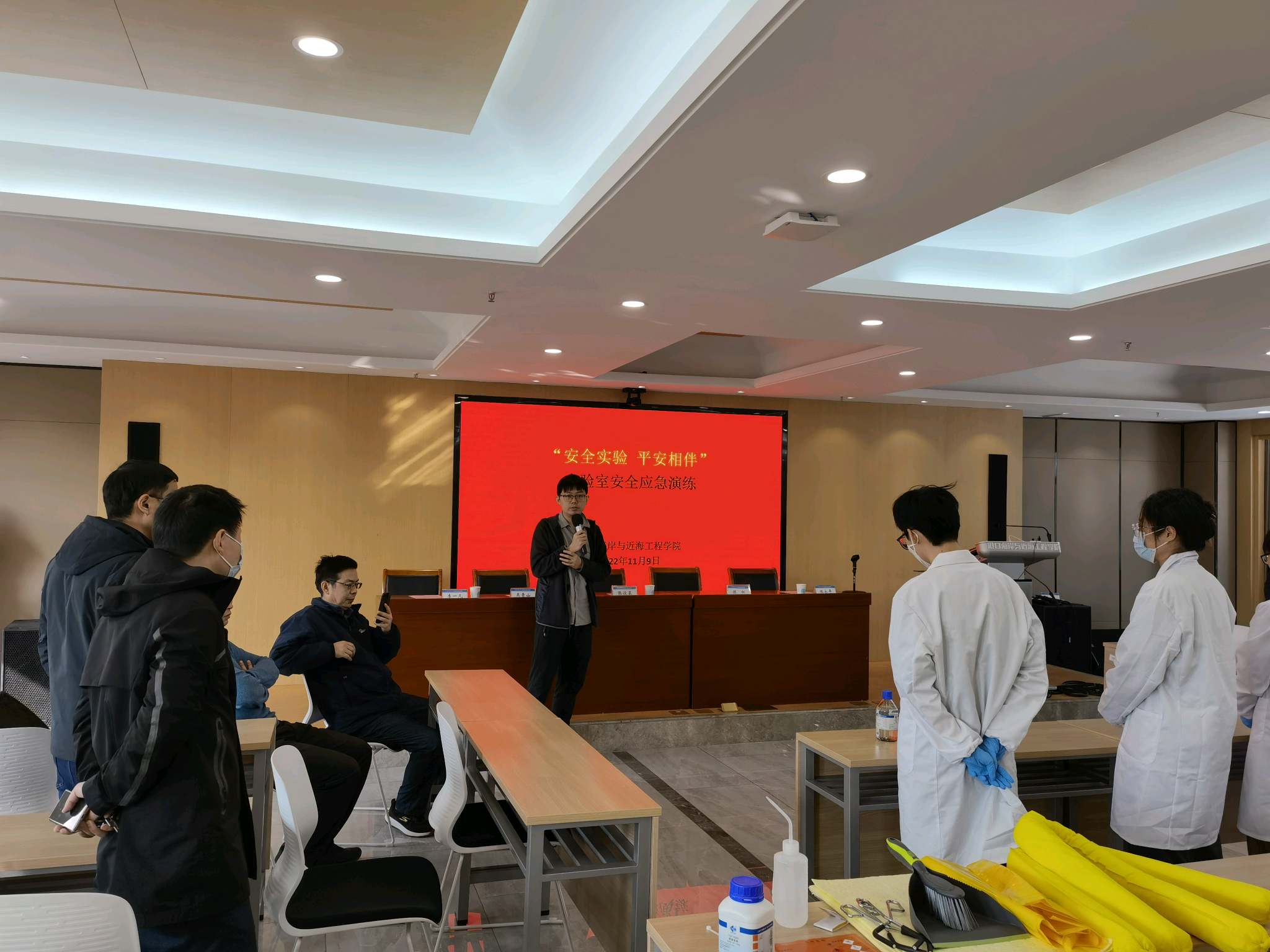 11月9日,澳门六合彩app 在严恺馆702会议室召开实验室安全应急演练会议。会议由澳门六合彩 陈永平副院长主持,澳门六合彩 党委书记张俊基、学校保卫处副处长吴青山、资产与实验室管理处副处长陈红、埃德博格公司经理李一凡出席会议,澳门六合彩 相关实验室管理人员、涉化实验室教师及学生参加。