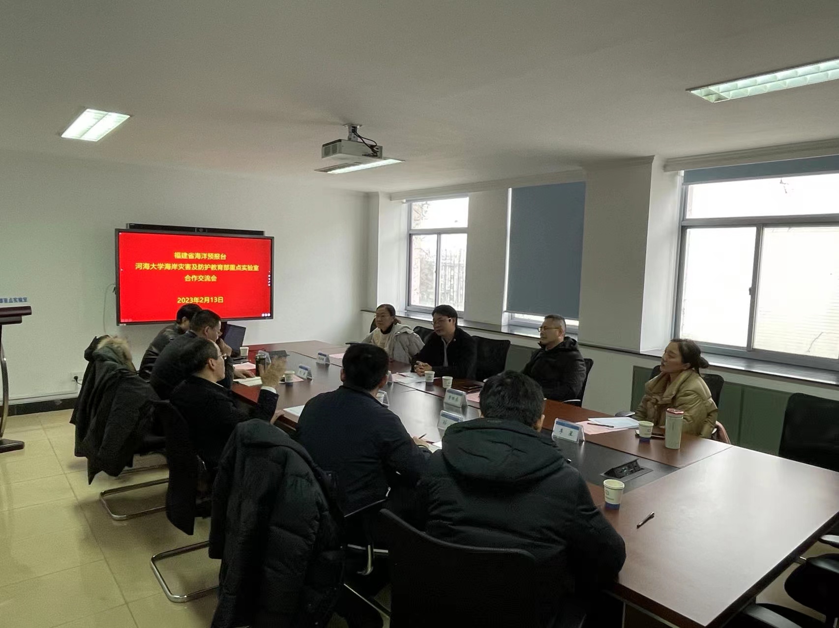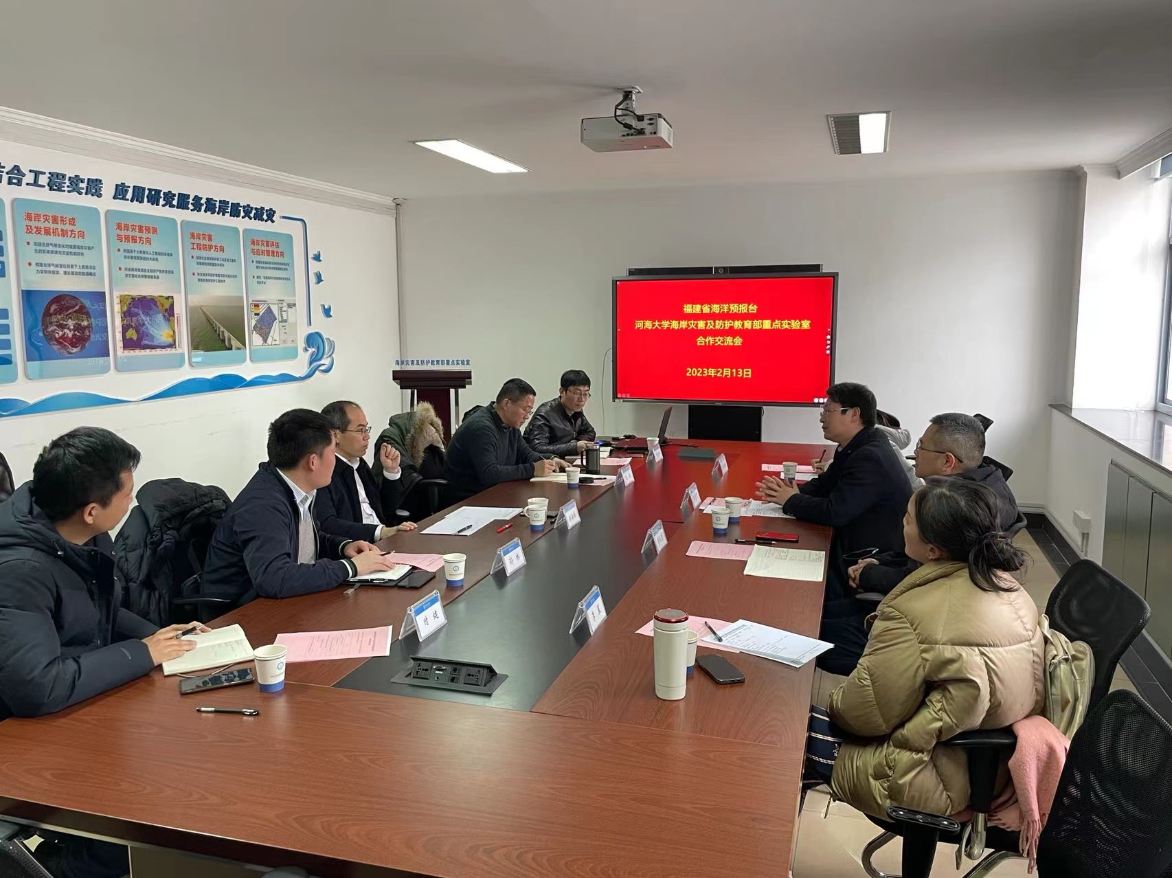 2023年2月13日,福建省海洋预报台曾银东副台长、李雪丁副台长、朱本璐高工和李星高工一行来澳门六合彩app 访问交流,洽谈了与海岸灾害及防护教育部重点实验室的合作事宜。会议由校科技处孙林副处长主持,在严恺馆404会议室举行。郑金海副校长致辞并作总结发言。澳门六合彩app 孔俊教授、陶爱峰教授、时健副教授参加了会议。