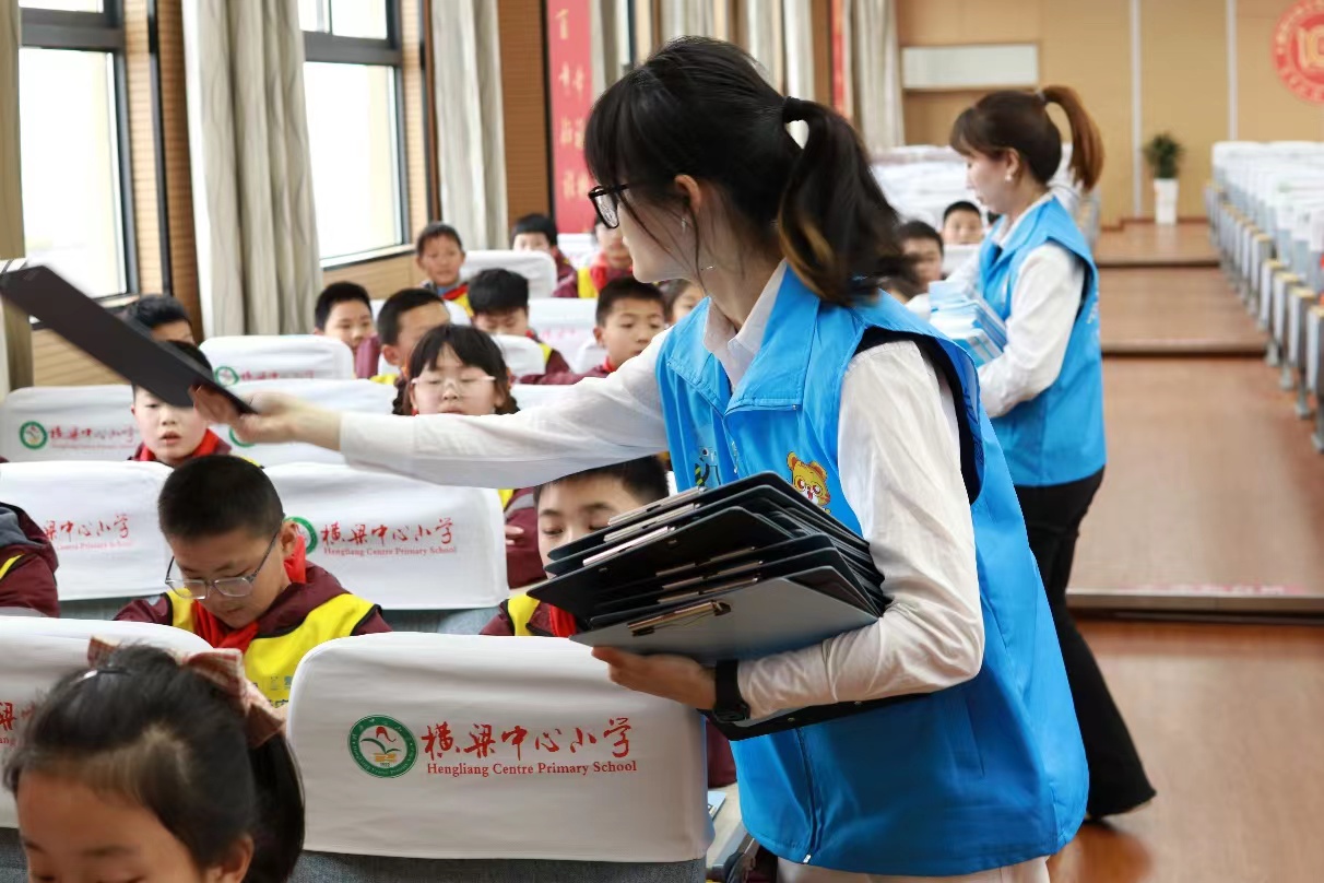 3月31日,以“关注交通安全 呵护儿童成长”为主题的2023宇通壹基金儿童交通安全公益行走进南京市横梁中心小学,澳门六合彩 研究生志愿团队参与其中,通过游戏互动的方式,寓教于乐,让孩子们在快乐中掌握交通安全知识,呵护儿童平安快乐成长。