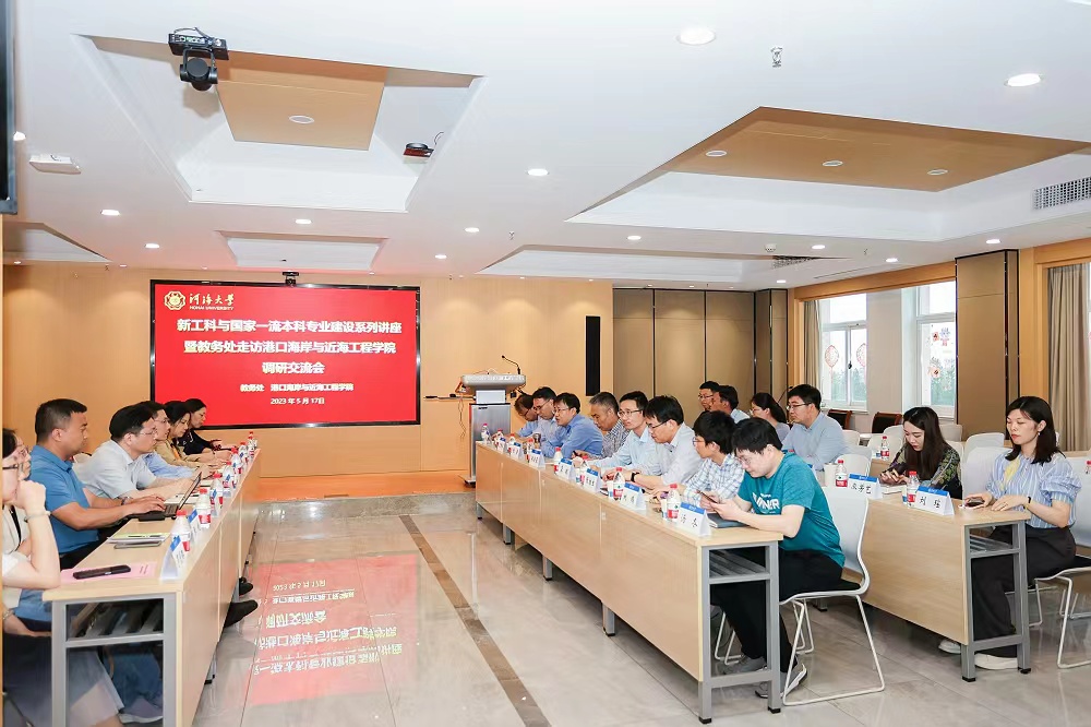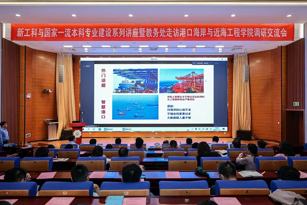 5月17日,教务处来澳门六合彩app 开展调研交流活动。副校长、港口航道与海岸工程专业负责人郑金海,教务处处长沈扬、副处长吴志勇,澳门六合彩app 党委书记张俊基,院长龚政,副院长张继生、张蔚、陈永平,副书记沈国军出席活动,澳门六合彩 全体教师及教务处各科室代表参加活动。活动特别邀请国家教学名师、国家级一流课程负责人中国海洋大学史宏达教授作课程建设案例分享。交流活动由澳门六合彩app 副院长张蔚主持。