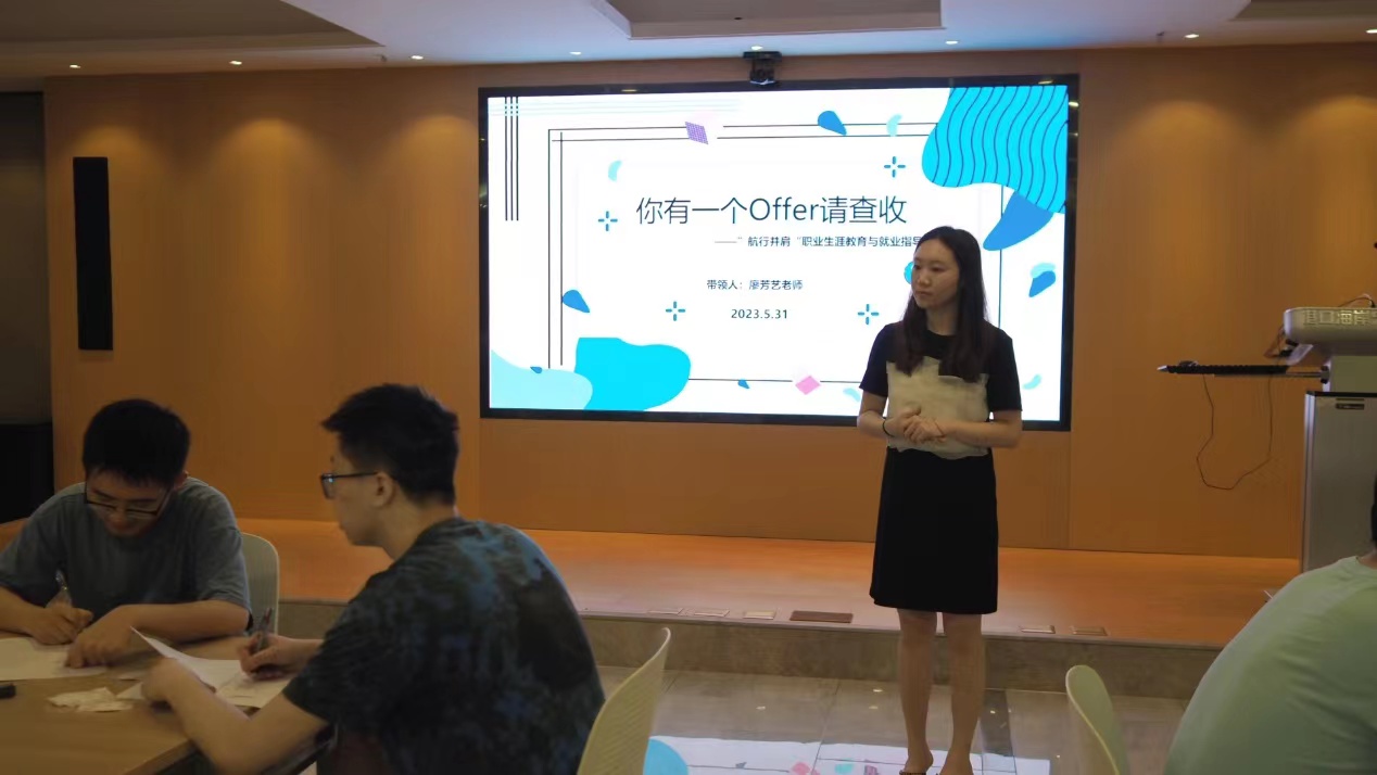 2023年5月31日晚,由河海大学“航行并肩”职业生涯教育与就业指导工作室主办的“你有一个offer请查收”辅导活动在西康路校区严恺馆702顺利举行。“航行并肩”生涯工作室带领人廖芳艺老师主持本次活动。