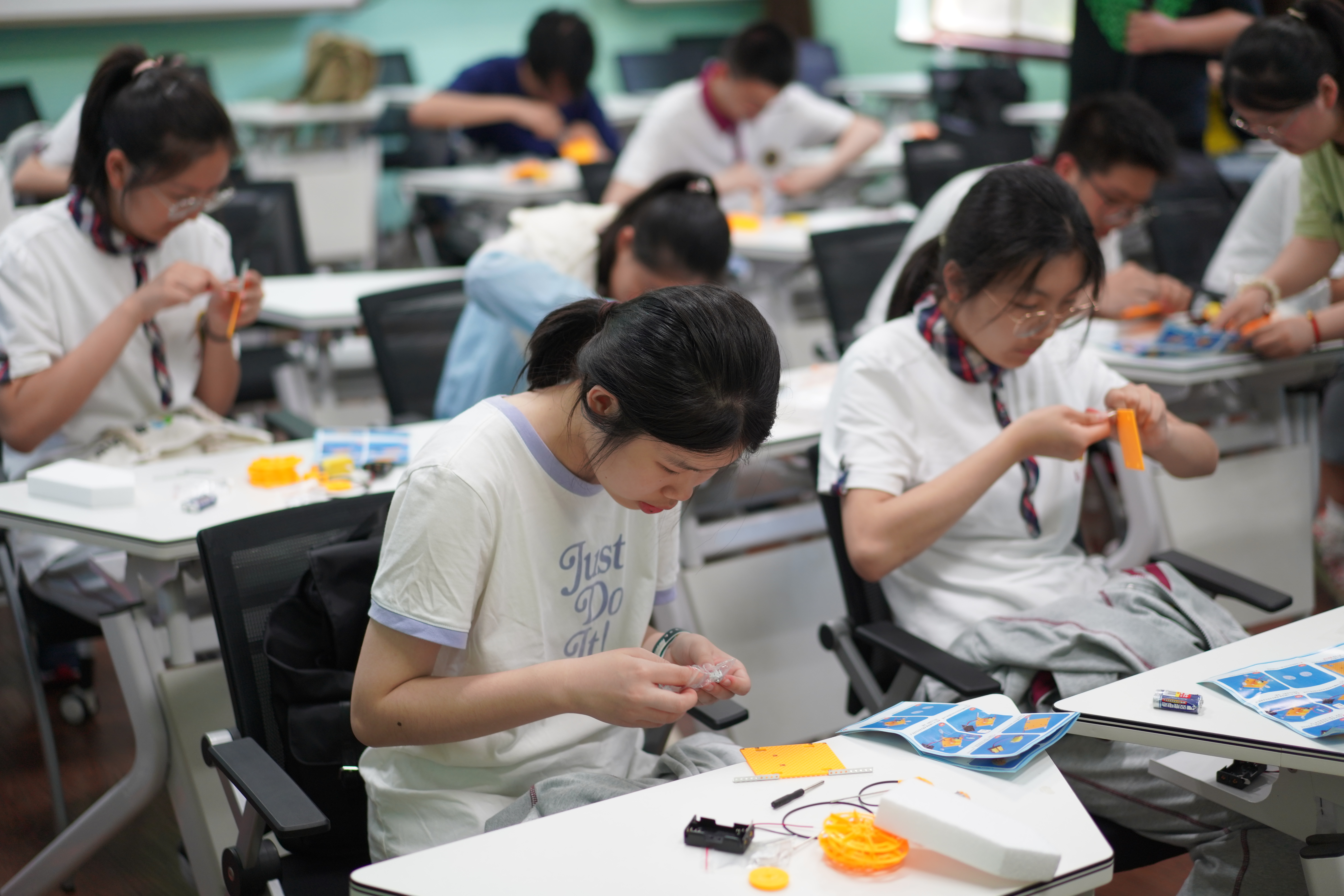在教室里,南京一中高中生与澳门六合彩app 学生交流大学生活,一起完成了海上装备模型拼装活动,帮助同学们在活动中感受实践探索的魅力,丰富了学生的水利常识,提升了其实践动手能力。